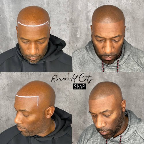 For men who are completely bald or have significant hair loss due to male pattern baldness, SMP offers the appearance of a clean-shaven head with natural hairline definition. This gives the impression of a full head of hair that has been closely cropped.
